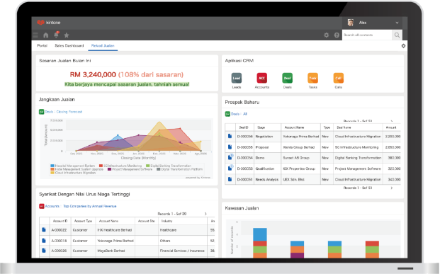 Kintone streamlines business processes with ready-to-use CRM templates.